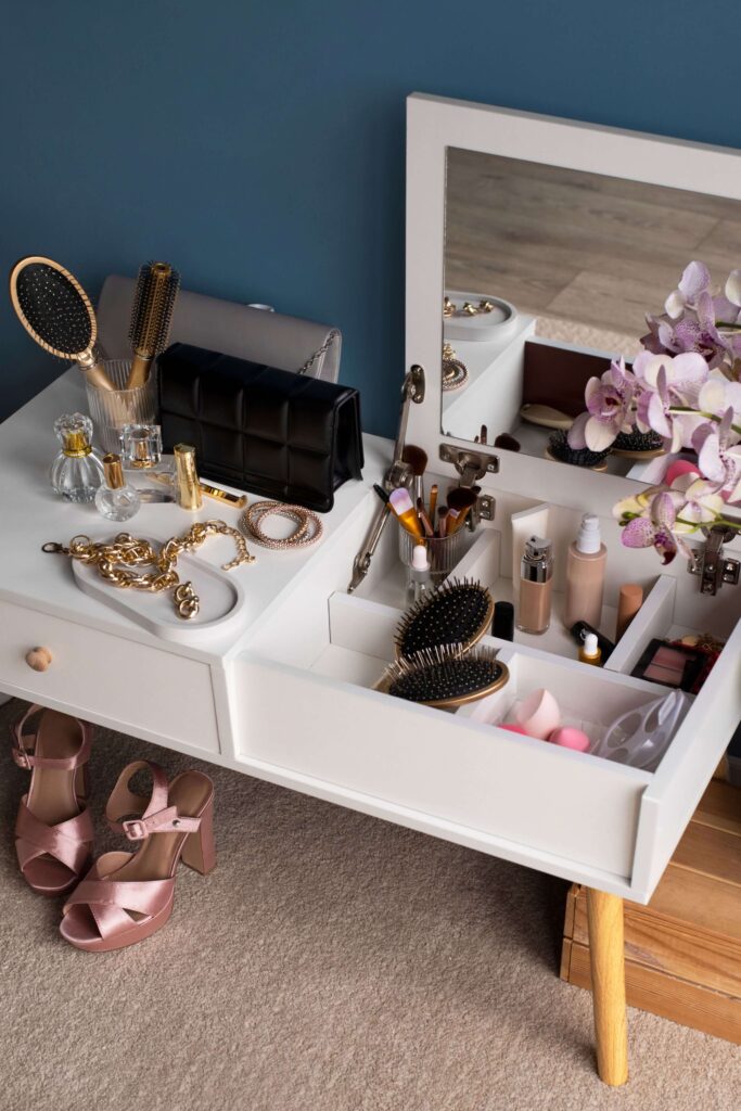 Colares, por exemplo, podem ser pendurados em ganchos ou em suportes verticais, o que evita que eles se embaracem e mantém tudo à vista. Já as pulseiras e anéis podem ser organizados em pequenas caixas ou em bandejas decorativas, que também dão um charme extra ao espaço. E os brincos? Um porta-brincos com divisórias é perfeito para manter pares organizados e fáceis de achar, enquanto ainda decora o ambiente.